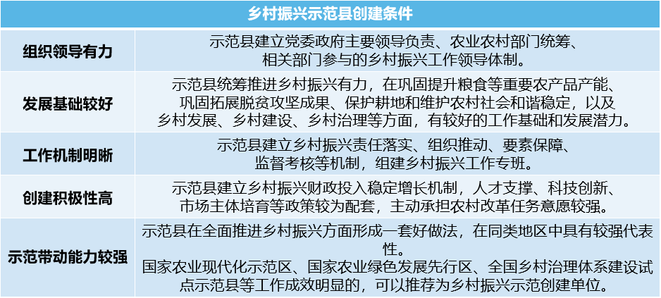 明確提出力爭用5年左右時間,開展創(chuàng)建工作的國家鄉(xiāng)村振興示范縣基本覆蓋全國各市(地、州、盟),可見,國家對此次鄉(xiāng)村振興示范區(qū)域打造的決心。